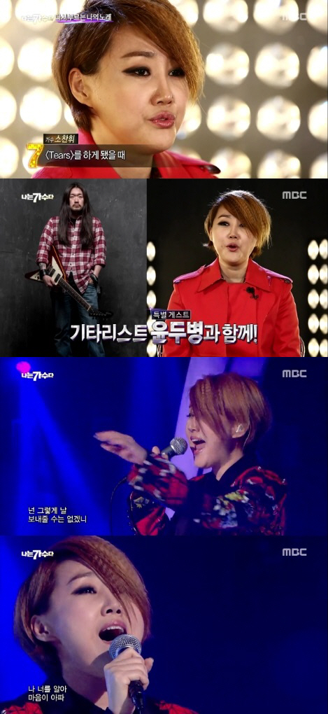이날 소찬휘는 '티얼스'에 대해 "15년간 셀 수 없이 불렀다. 진짜 천번 불렀을까"라며 웃었다. 청중평가단은 소찬휘가 '티얼스'를 부른다는 말에 환호로 기대감을 드러냈다.