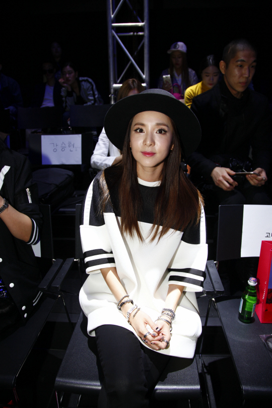 20일 서울시 동대문 DDP에서 열린 2015 F/W 서울패션위크 권문수 디자이너 의 컬렉션에 참석하여 포즈를 취하고 있다. 귀여운 외모에 시크한 옷차림이 눈길을 끈다. '서울패션위크'는 20일부터 오는 25일까지 6일간 동대문디자인플라자(DDP)에서 개최된다.