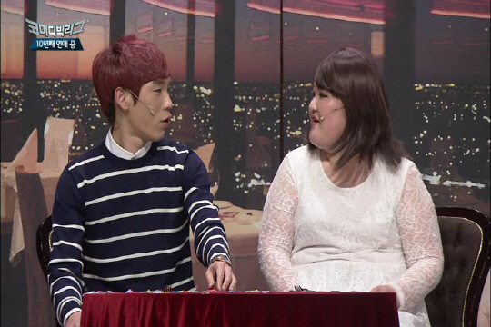 '10년째 연애중'은 연애 초반 달콤하고 로맨틱한 커플과 10년이 지난 뒤 현실적인 커플의 모습을 한 자리에서 보여주며 1년 7개월 동안 '코빅'에서 사랑받아온 코너다. '호로록', '뿌잉뿌잉'과 같은 유행어와 식탐송을 히트시키며 맹활약했던 이국주와 매회 수작업으로 만든 반전 음식들로 사랑고백을 했던 김여운 커플이 과연 어떤 결말을 맞게될지 궁금증이 생기고 있다.