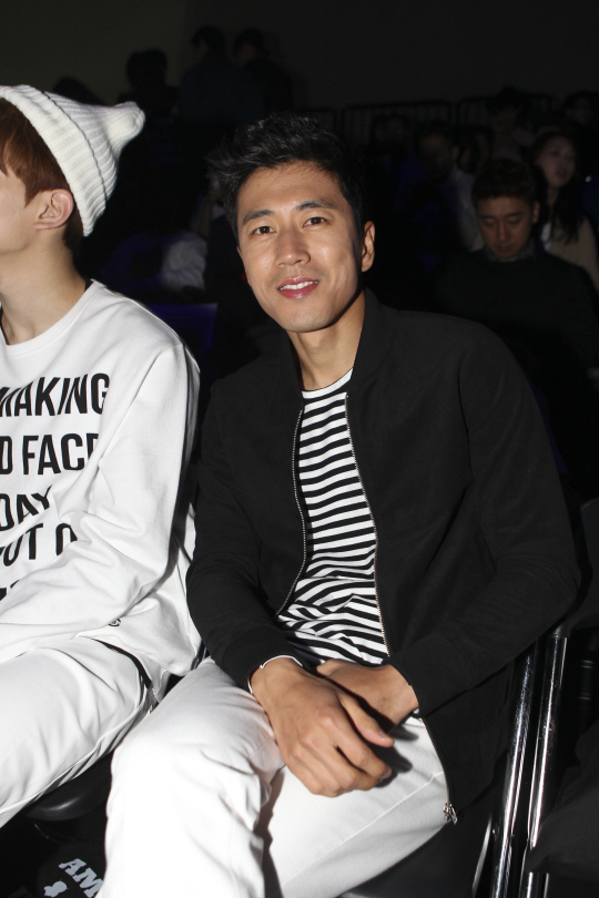 3월 21일 오후 8시 30분 '서울 동대문디자인플라자(DDP)에서 열린 '2015 F/W 서울패션위크' 슈퍼콤마비 바이 슈콤마보니 컬렉션에 장수원이 참석했습니다. 이날은 로봇같은 딱딱함이 아닌, 부드럽고 여유로운 미소로 카메라를 쳐다보네요. 스트라이프 이너 티셔츠에 블랙 짚업 재킷을 매치하여 모던하고 따뜻한 도시남자의 느낌을 살립니다. <스포츠조선 연예패션팀>