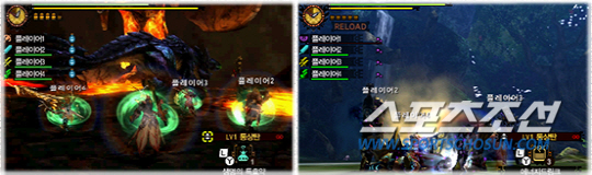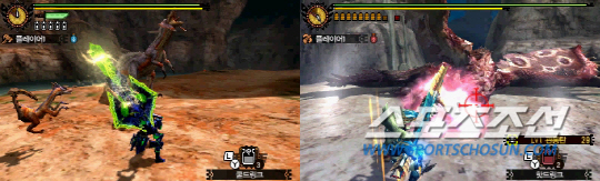 | 4G의 도래와 함께 강력해진 차지액스의 새로운 액션(좌)과 헤비보우건의 용격포(우) |