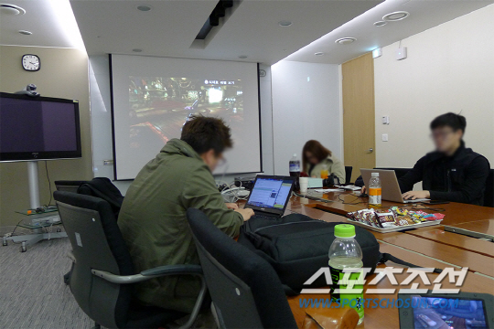 | 한국닌텐도 본사에서 화면도 띄워 놓고 열심히 달려보았습니다! |