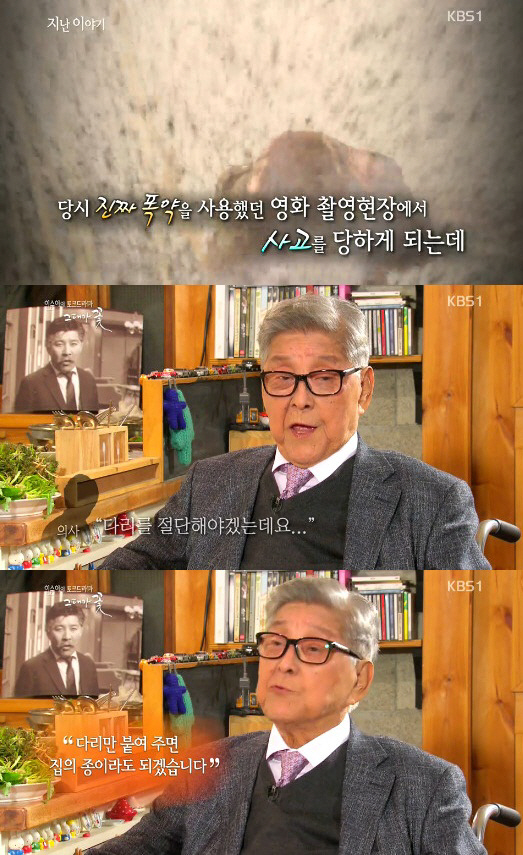 이어 그는 "당시 의사도 망설였다. 다리를 절단해야 한다고 했다"며 "다리만 붙여주면 집의 종이라도 할테니까 다리만 붙여달라고 사정을 했다"고 덧붙여 안타까움을 자아냇다.