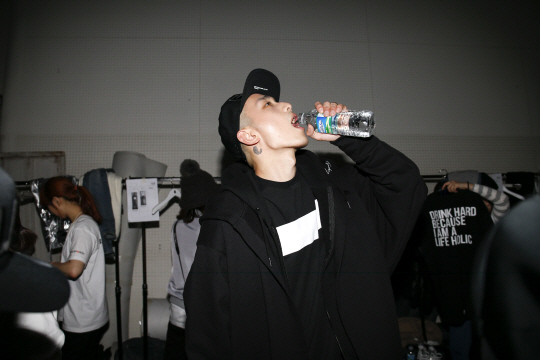3월21일 서울 중구 동대문디자인플라자(DDP)에서 열린 2015 F/W 서울패션위크 이보현 디자이너의 슈퍼콤마비 바이 슈콤마보니(SUPERCOMMA B by Suecomma Bonnie) 백스테이지 현장입니다. 주로 세계무대에서 활동했던, 세계 모델 랭킹 27위에 빛나는 박성진이 긴장한 듯 물을 마시고 있어요. 물 마시는 모습도 어쩜 그리 모델같은지. 액티브함과 힙한 느낌이 돋보였던 자유분방한 슈콤마보니의 컬렉션답게 백스테이지 현장도 즐거웠다는 후문이 들립니다. <스포츠조선 연예패션팀>