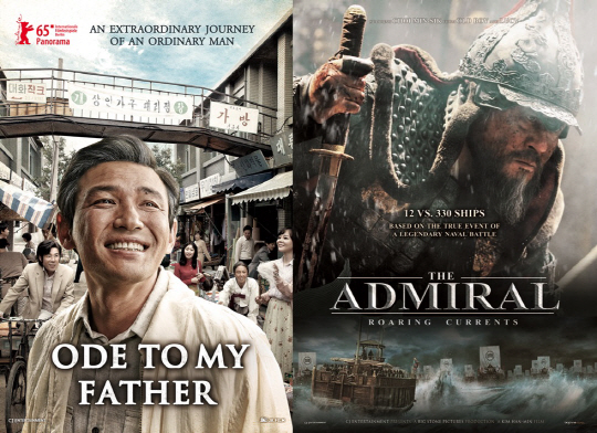 CJ E&M은 "북미 박스오피스 조사기관 Rentrak에 따르면 지난 해 북미에서 개봉한 '명량'과 '국제시장'이 각각 누적 매출 259만 달러(한화 약 29억원)와 228만 달러(한화 약 25억 원)를 기록하며 2014년 북미 개봉 외국어 영화 TOP 10에 나란히 오르는 성과를 이뤘다"고 25일 밝혔다. 한국 영화가 북미 개봉 외국어 영화 TOP 10에 오른 것은 2007년 봉준호 감독의 '괴물'(당시 7위) 이후 8년 만이며, 나란히 두 작품이 TOP 10에 진입한 것은 지난 해가 처음이다.