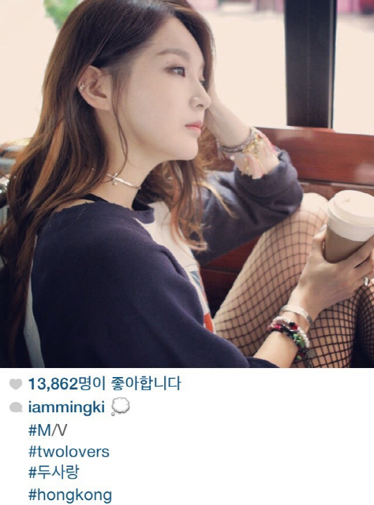 강민경은 홍콩에서 커피 한 잔을 들고 창 밖의 풍경을 응시하고 있다. 홍콩은 다비치의 신곡 '두 사랑' 뮤직비디오 속 배경이기도 하다.