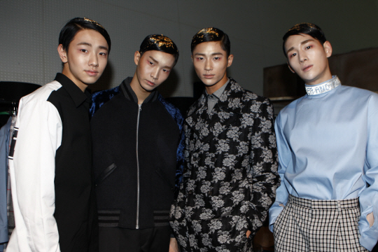 2015 F/W 서울패션위크 닷새째를 맞이한 24일 오후, 신인 디자이너 이지연의 자렛(JARRET) 백스테이지 현장입니다. 각기 다른 개성을 지닌 훈훈한 남자모델 네명이 카메라를 응시하고 있습니다. 니시와 페미니즘, 아방가르드와 미니멀리즘, 동양과 서양 등 서로 다른 것들을 조화시키는 듀얼리즘과 여성성을 결합해 당당하지만 부드러운 여성상을 표현해 온 이지연 디자이너. 그의 이번 시즌 컬렉션 테마는 'Alice in Mirrorland'입니다, 거울 속에서 길을 잃은 '훈남' 앨리스들의 의상은 각각 레이스, 체크, 울 등의 다양한데, 한 런웨이에서 주제는 동일하면서도 이렇게 각각 다른 디테일의 옷들이 탄생합니다.<스포츠조선 연예패션팀>