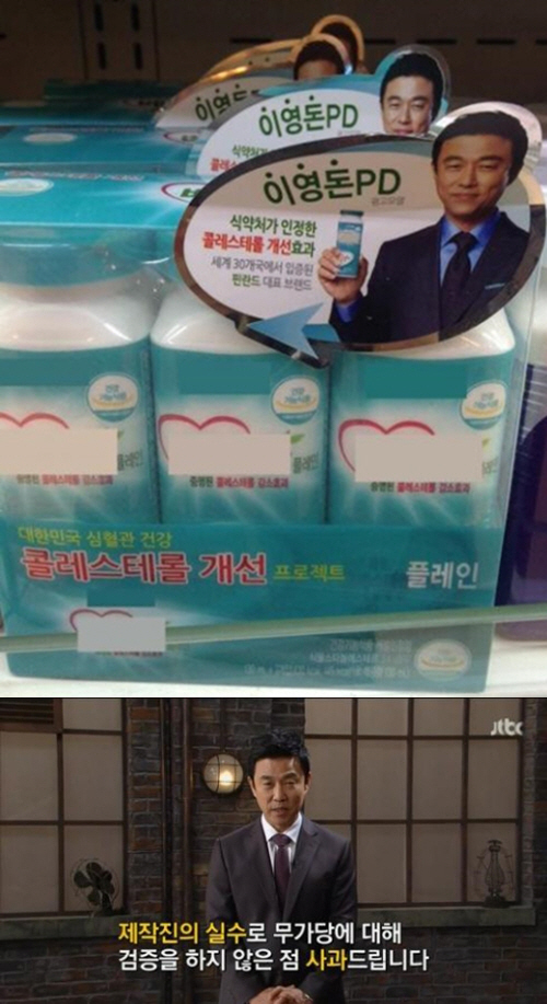 이에 이영돈 PD는 22일 방송을 통해 "제작진의 실수로 그 매장의 무가당 그릭 요거트에 대해서는 테스트를 하지 못했다"고 해당 업체에 사과했다. <스포츠조선닷컴>