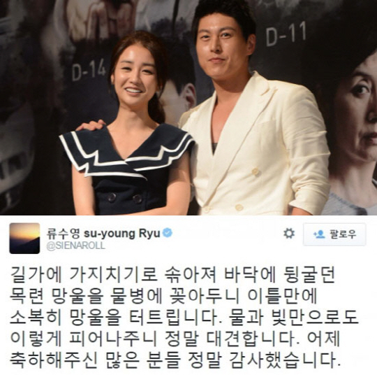 앞서 23일 류수영과 박하선은 소속사를 통해 열애사실을 전했다. 지난 2013년 방영된 MBC 드라마 '투윅스'에서 결혼을 약속한 연인 사이로 연기 호흡을 맞췄던 두 사람은 드라마 종영 이후 친분을 이어가다 최근 연인 사이로 발전한 것.