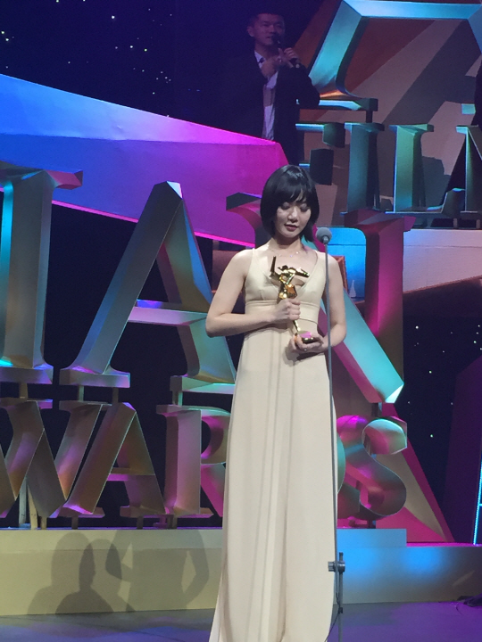 25일 중국 마카오 베네시안 리조트 베네시안 극장에서 열린 제9회 아시안필름어워즈(AFA)에서 배두나는 영화 '도희야'로 여우주연상 수상자로 호명됐다.