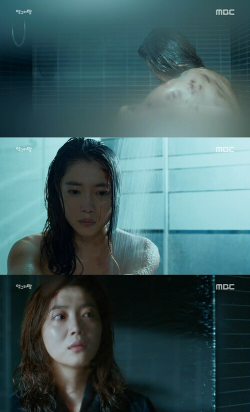 '앵그리맘' 홍상복은 식탁에 올려져 있던 물건을 내연내 주애연에게 던져 그의 이마에 피를 흘리게 했다.