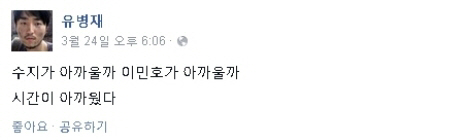 유병재는 3월 24일 자신의 페이스북에 "수지가 아까울까 이민호가 아까울까. 시간이 아까웠다"라는 글을 게재했다.