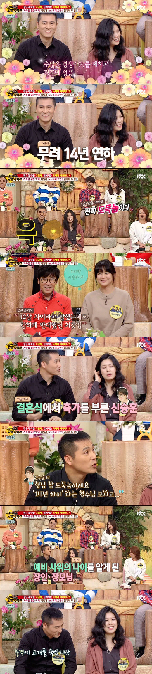 이일재가 부럽다. 14세 차이 나는 형수를 만나다니…'라는 말을 해서 들통이 났다. 얘기를 듣고 장모님이 고개를 숙이셨다"고 고백했다. <스포츠조선닷컴>