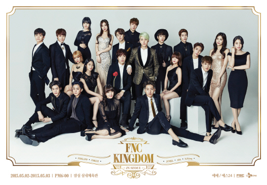 '2015 FNC 킹덤 인 서울'은 5월 2~3일 잠실실내체육관에서 개최된다. 투톱 한류 밴드로 활약 중인 FT아일랜드와 씨엔블루가 선사하는 밴드 사운드를 기반으로 한 강렬한 무대와 걸그룹 AOA의 화려한 퍼포먼스, 여성 솔로 싱어송라이터 주니엘의 감성적인 공연이 어우러질 예정이다. 또 데뷔를 눈앞에 둔 신예 밴드 엔플라잉의 무대도 미리 만나볼 수 있는 자리다. 두 차례 공연은 각각 다른 세트리스트로 구성될 예정이라 팬들의 기대감을 높일 전망이다. 이정혁 기자 jjangga@sportschosun.com