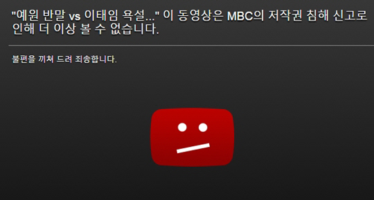 예원 이태임 욕설 반말 영상이 MBC '저작권 침해 신고'로 차단됐다.