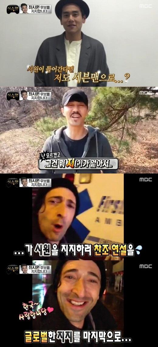 애드리언 브로디는 "최시원은 한국의 애드리언 브로디다. 꼭 최시원을 뽑아줬으면 좋겠다"고 말했다.