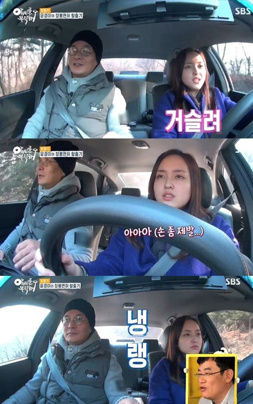 이날 방송에서 조윤경은 조수석에 아빠 조민기를 태운 채 남한산성 운전 연습에 나섰다.
