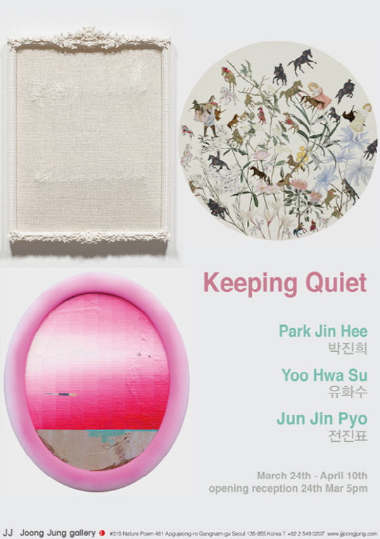 박진희, 유화수, 전진표 작가의 '침묵 속에서(Keeping Quiet)'가 오는 4월 10일까지 서울 청담동 JJ중정갤러리에서 열린다.