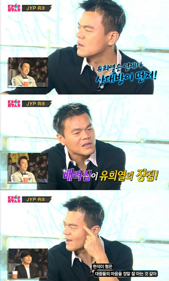 가수 박진영이 유희열과 양현석의 장점을 밝혔다.