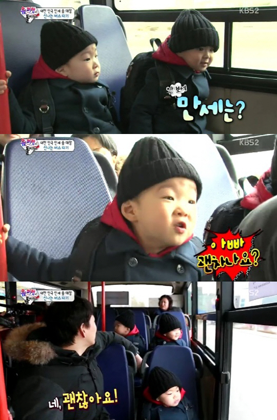 이어 버스가 덜컹거리자 대한이는 "아버지 괜찮아요"라고 물으며 기특한 모습을 보이기도 했다. <스포츠조선닷컴>