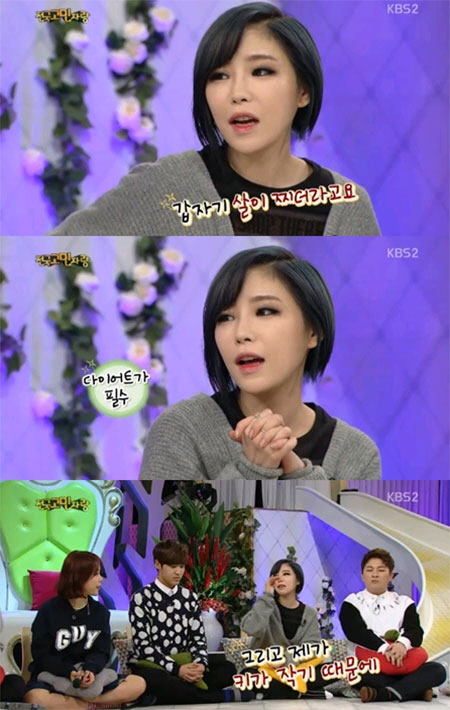 이날 가인은 활동 준비하면서 가장 신경쓴 부분이 뭐냐는 질문에 "1년 정도 쉬었더니 갑자기 살이 많이 찌더라"며 "아무래도 딱 붙는 의상을 입고, 제가 키가 작다보니 신경이 쓰이더라"라고 고민을 토로했다.