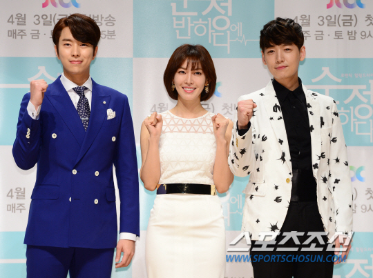 31일 오후 서울 마포구 상암동 JTBC에서 드라마 '순정에 반하다' 제작발표회가 열렸다. 윤현민, 김소연, 정경호가 포토타임에서 포즈를 취하고 있다. '순정에 반하다'는 피도 눈물도 없는 냉혈남이 새 심장을 얻은 후 오직 한 여자에게만 뜨거운 가슴을 지닌 감성 충만한 순정남으로 180도 달라지면서 벌어지는 로맨틱 힐링 드라마다. 김소연, 정경호, 윤현민이 출연하는 '순정에 반하다'는 오는 4월 3일 첫 방송된다. 김보라 기자 boradori@sportschosun.com