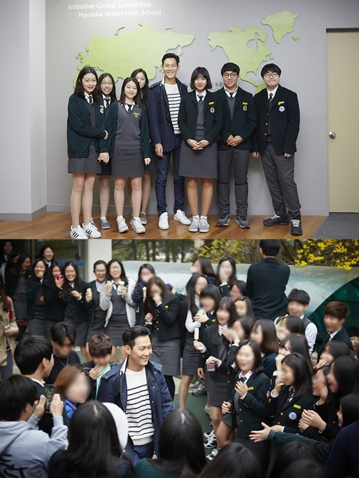 31일 씨제스 엔터테인먼트는 "오늘 이정재가 자신의 모교인 현대고등학교를 방문, 후배들의 일일 멘토로 변신해 즐거운 대화의 장을 열었다"고 전했다.