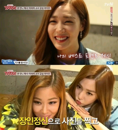 이날 방송에서는 제시의 '절친'으로 소녀시대의 티파니가 깜짝 등장해 시선을 모았다. 제시와 티파니는 중학생때부터 함께 학교를 다녀 서로 별 다른 말이 없어도 편한 '베스트 프렌드'라고. 두 사람은 영어와 한국어를 섞어쓰면서 자유롭게 대화를 나눠 눈길을 끌었다.