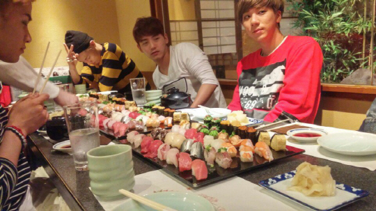 핫샷은 지난달 29일 도쿄 타워 레코드 시부야점 4F 이벤트 스페이스에서 팬사인회를 열기 위해 일본으로 향했다. 6명의 핫샷 멤버들은 도쿄 체류 중, 한 초밥 체인점에 들러 무려 초밥 240조각을 10여분만에 시식해 눈길을 모았다.