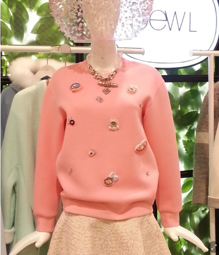 밋밋한 보석 무늬 프린팅이 아니라 진짜로 큐빅이 옷에 달려있다면 어떨까요? '우리 결혼했어요' 265회의 김소은의 핑크색 맨투맨 티셔츠는 다양한 형태의 큐빅이 블링블링하게 달려있습니다. 김소은의 화사한 웃음과 맞물려 옷에서도 반짝반짝 빛이 나는 것 같아요. 입체감이 살아있어 유니크한 이 제품은 듀엘, 품번은 D151MSM007, 가격은 17만 9,000원입니다. <스포츠조선 연예패션팀>