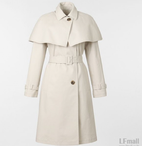 2015 봄트렌드인 케이프 코트, '풍문' 재벌가 며느리 고아성의 케이프는 옅은 그레이색입니다. 귀여운 케이프 디테일은 고아성을 더욱 소녀스럽게 만들어요. 클래식한 느낌으로 우아함을 유지하면서 소녀같은 느낌까지 챙길 수 있는 이 제품은 질스튜어트의 케이프 디테일 벨티드 슬리브 트렌치 코트입니다. 품번 JSH25A130, 가격은 40만원대. <스포즈조선 연예패션팀>