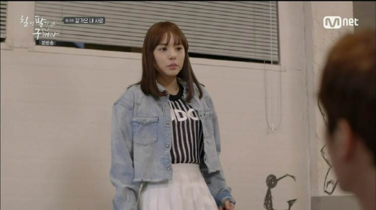 지난 20일 방송된 tvN 뮤직드라마 '칠전팔기 구해라' 11회에서 민효린은 발랄한 매력을 가득 뽐냈어요. 허리가 짧은 크롭 스타일의 연청 데님셔츠와 핀스트라이프 이너 티셔츠를 함께 착용하였습니다. 하의는 화이트 스커트를 선택해 순수하고 상큼한 봄 기운을 전달했네요. 전체적으로는 연한 계열의 색상으로 맞추고 레터링 포인트가 돋보이는 블랙 스트라이프로 룩의 포인트를 준 점이 센스 넘쳐요. 민효린의 연청 데님은 올 세인츠 제품, 가격은 19만 8,000원입니다.