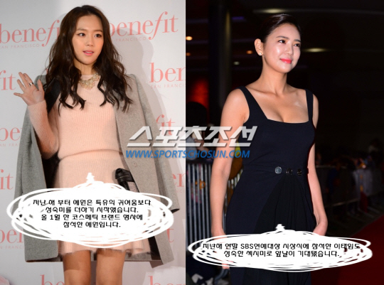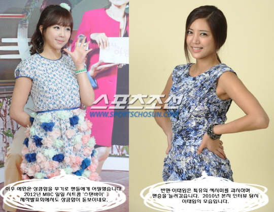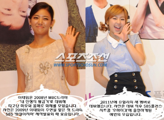 이태임은 2008년 MBC 드라마 '내 인생의 황금기'로 데뷔해 타고난 미모와 몸매로 화제를 모았습니다. 사진은 2009년 이태임이 주연을 맡은 첫 드라마 SBS '망설이지마' 제작발표회 때 모습입니다. 예원은 그보다 3년 늦은 2011년에 쥬얼리의 새 멤버로 데뷔했습니다. 사진은 데뷔 직후 SBS플러스 시트콤 '오마이갓'에 출연하게된 예원의 모습입니다. 예원은 이 시트콤에서 이병준 박준금의 딸로 출연해 깜찍함을 과시했습니다.