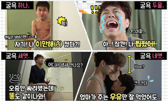 사진 속에는 '자기 나 이만해졌다~' '거기 집혔어' 등의 드라마 속 19금 연기 장면들이 담겨 있다.
