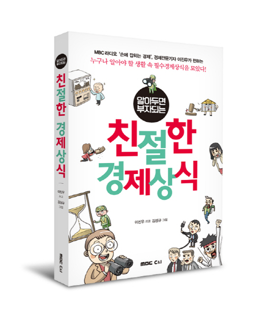 우리가 평소에 궁금해하던 경제 상식 질문들을 한 권에 모았다. MBC라디오 '손에 잡히는 경제'의 진행자 이진우 기자가 쉽고 친절한 설명을 덧붙이고 김성규 만화가의 재치 있고 재미있는 만화로 어렵고 낯선 경제 상식들을 쉽게 풀어준 '알아두면 부자되는 친절한 경제상식'이 출간됐다.