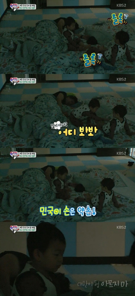 5일 오후 방송된 KBS 2TV '해피선데이-슈퍼맨이 돌아왔다'(이하 '슈퍼맨') 72회에서는 아침에 일어나자마자 송대한을 걱정하는 송민국의 모습이 그려졌다.