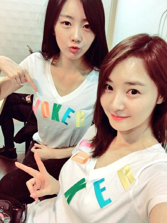 사진 속에서 우희는 수빈과 나란히 'JOKER' 라고 새겨진 화이트 티셔츠를 입고 귀엽게 포즈를 취하고 있으며, 수빈은 자신의 티셔츠에 쓰인 'JOKER' 단어를 가리키며 카메라를 응시하고 있는 모습이 영락없는 걸그룹 막내다.