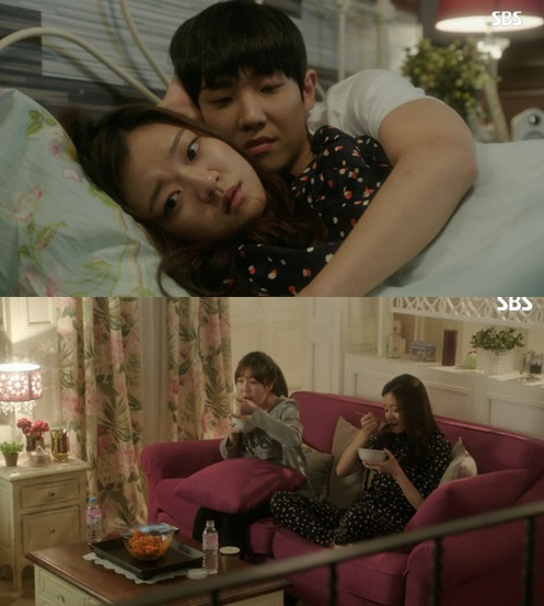 하지만 아직 그녀의 나이 열아홉. 여전히 아이 같은 면모가 남아있을 수밖에 없는 나이입니다. 천진한 성격은 잠옷에서 드러나는데요. 재벌가의 잠옷이라고 하면 흔히 예상할 수 있는 고급스러운 실크 소재의 잠옷이 아닌 네이비 컬러에 프릴 소재 카라와 도트 무늬가 귀여운 느낌을 자아내는 잠옷을 입었습니다.