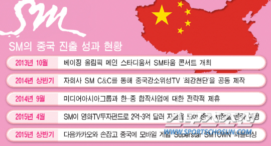 SM은 지난해 9월 중국에서 음악, 영화, 드라마, 공연 등 다방면에서 활발한 비즈니스를 펼치고 있는 홍콩 최대 엔터테인먼트 기업인 미디어아시아와 한-중 합작사업에 대한 전략적 제휴를 체결한 바 있다. 이어 미디어·엔터테인먼트 콘텐츠 투자펀드인 '드래곤 타이거 캐피털 파트너스(DTCP)'를 설립했다.