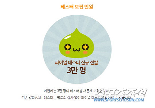 테스터 모집은 오는 15일부터 26일까지 공식 홈페이지를 통해 진행되며, 테스터 당첨자는 29일 공개된다. 지난 알파 테스트 및 비공개 시범(클로즈드 베타) 테스트에 참가한 유저라면 별도의 신청 절차 없이 테스트에 참여할 수 있다.