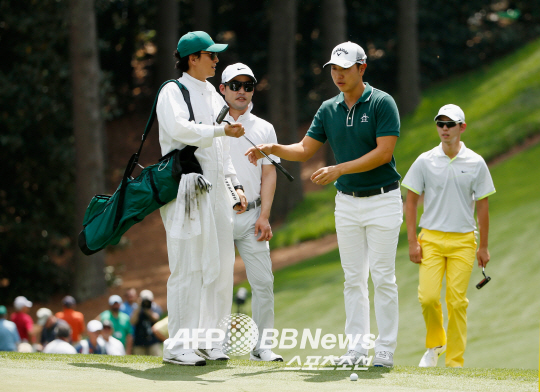 배용준은 이날 이벤트 대회인 파3 콘테스트에 출전한 배상문(29)의 캐디를 맡아 눈길을 끌었다.