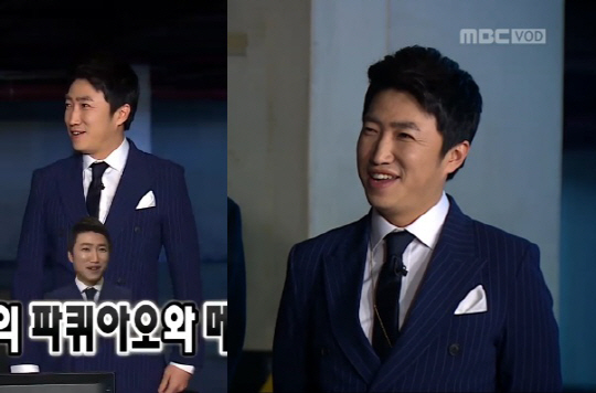 MBC 인기 예능 '무한도전 -식스맨 특집'편 후보로 등장한 장동민의 모습입니다. 스포츠조선이 선정한 수트가 잘 어울리는 '무한도전' 베스트드레서로 꼽힌 그의 수트 패션은 다시봐도 센스가 넘쳐요. 청량한 네이비 컬러의 재킷에 세로 스트라이프 포인트가 매력적입니다. 왜소한 몸매이지만 어깨를 강조한 더블 버튼 수트를 통해 남성적인 매력으로 여유있게 소화했어요. V존의 안정적인 넥타이 코디와 행커치프로 시선을 집중시켜 작은 키를 보완하는 센스까지! 장동민의 수트는 쿠레쥬 옴므의 제품으로 20만원대. 타이는 자라 맨의 제품입니다. <스포츠조선 연예패션팀>
