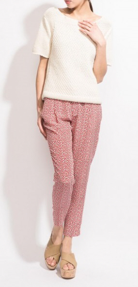 Mnet의 새 드라마 '더러버' 첫방송에서 최여진은 독특한 집안 패션을 선보였어요. 앙증맞은 리본모양의 헤어밴드와 그 컬러에 맞춘 팬츠가 눈에 띄어요. 촘촘하게 딸기패턴이 프린트되어 사랑스러운 느낌이지만, 최여진의 긴 다리에 꼭 맞아 은근한 섹시미를 불러일으키기도 하네요. 남자친구 혹은 친한 친구들과 집에서 뒹굴거릴 때 편하면서도 귀엽게 착용할 수 있을 것 같아요. 폴앤조의 팬츠로 품번 5176593, 가격은 66만원대입니다. <스포츠조선 연예패션팀>
