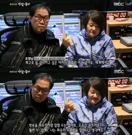이날 조영남은 "최고로 일 같이 하고 싶은 여자는 최유라 이상 없다. 세계에서"라면서 "방송을 최유라처럼 잘 할 수 없다. 오프라 윈프리보다 훨씬 더 잘한다. 나는 최유라가 방송을 잘한다고 생각한다"고 말했다.