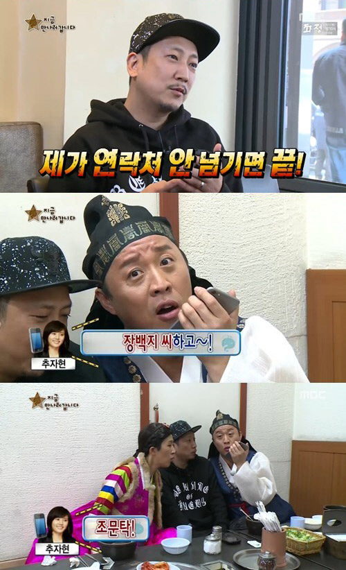 정준하는 추자현에게 "나 기억 나냐. 나 안 잊었지?"라고 인사를 건넸고 "한류스타니까 중화권 스타들과 다 친하지 않냐"며 사정을 설명했다. 이에 추자현은 "내가 친분이 있는 분은 장백지와 '황비홍'으로 유명했던 조문탁이다"고 밝혔다.