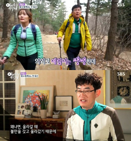 지난 방송에서 심혈관 검사 시술을 받았던 이경규는 건강을 위해 딸 예림에게 함께 등산 갈 것을 제안했다.