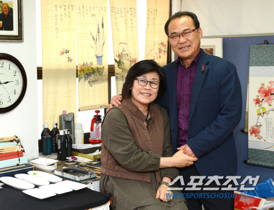 "사실 가장으로서는 빵점입니다. 밖에서 일을 하다보니 평생 집에 생활비를 가져다준 적이 없어요(웃음). 아내에 대한 마음의 빚을 이번 전시로 조금이나마 갚았으면 합니다." 남편의 말에 아내 신 화백은 그저 염화미소(拈華微笑)를 지을 뿐이다. 한 길을 걸어가는 부부는 아름답다. 김형중 기자 telos21@sportschosun.com