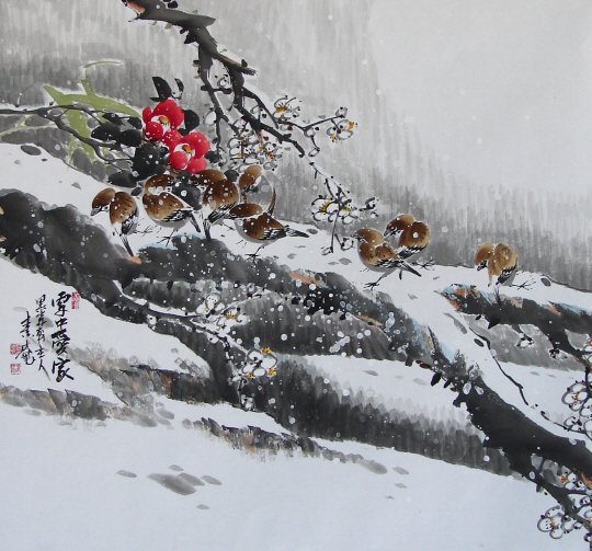 그의 이런 화풍을 잘 보여주는 예가 바로 문인화에 비구상(非具象)을 접목한 일련의 작품들이다. 오묘한 발묵(潑墨) 효과로 연출한 비구상을 화면에 배치한 뒤 매화와 연꽃을 그려 넣었다. 느낌이 독특하다. 이번 전시에서 30여 점 선보인다. 이외에도 30m 짜리 3점, 20m 짜리 2점 등 대작도 공개한다. 작가로서 자존심을 걸겠다는 박화백의 야심과 각오가 피부에 와닿는다.