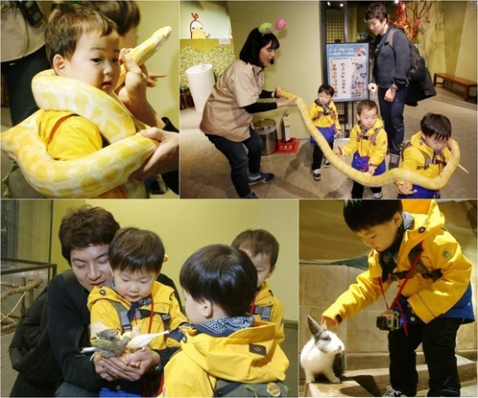 악어, 공룡이라면 얼굴에 자동으로 미소가 번지는 삼둥이를 위해 송일국은 동물들을 직접 만져보고 교감할 수 있는 동물 체험관 방문을 계획한 것.