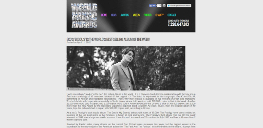 월드뮤직어워즈에 따르면 엑소의 정규 2집 '엑소더스'가 지난 한 주간 전세계에서 판매된 앨범 랭킹에서 1위에 올랐다.